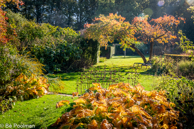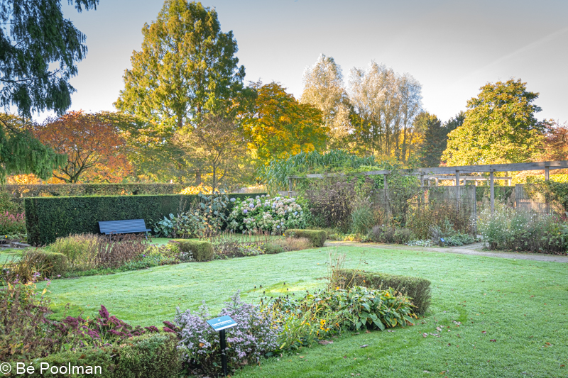 In deze rust is het heerlijk om foto’s te maken. Ik geef me dikwijls over aan het moment. Dat betekent het ene moment dat ik me richt op de compositie en doorkijkjes in de tuin, maar een moment later ook met de macrolens los kan gaan op een bloem of een insect. Onderstaande foto’s zijn eind oktober 2021 gemaakt.