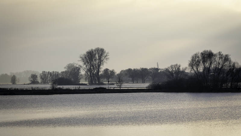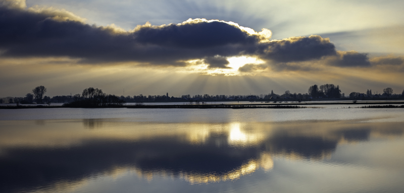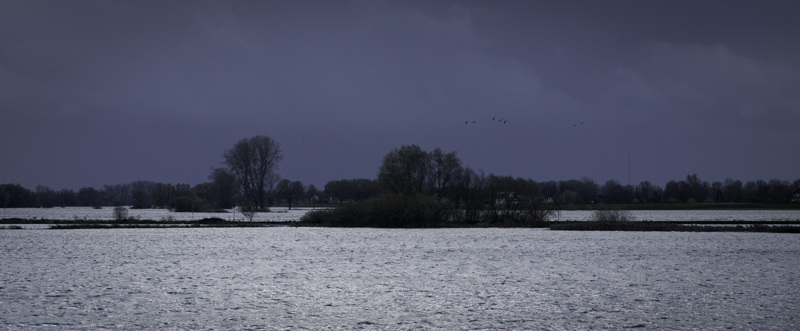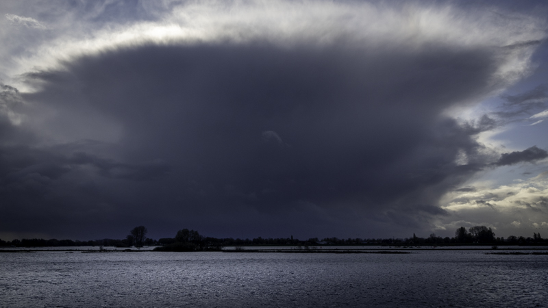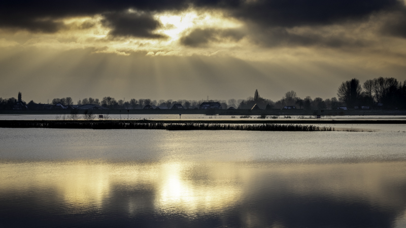 November 2023 gaat de geschiedenisboeken in als een warme, maar vooral natte maand. Dat betekent dat de rivieren steeds verder buiten hun oevers treden. Zo ook de IJssel tussen Olst en Deventer. Voeg daarbij nog eens bijzondere luchten aan toe en zie daar een mooie basis voor fraaie landschapsfoto’s.